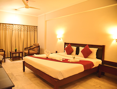 The Hotel has a big lobby equipped with 24 hours front office & security service for the guests. The hotel has 48 rooms in total that comprises of Twin share rooms, Deluxe king size rooms & Family Suite Room. There is a gift shop in the lobby, an in-house vegetarian restaurant named Mohini and we have a banquet hall holding a maximum capacity of 500 people for marriages & parties.